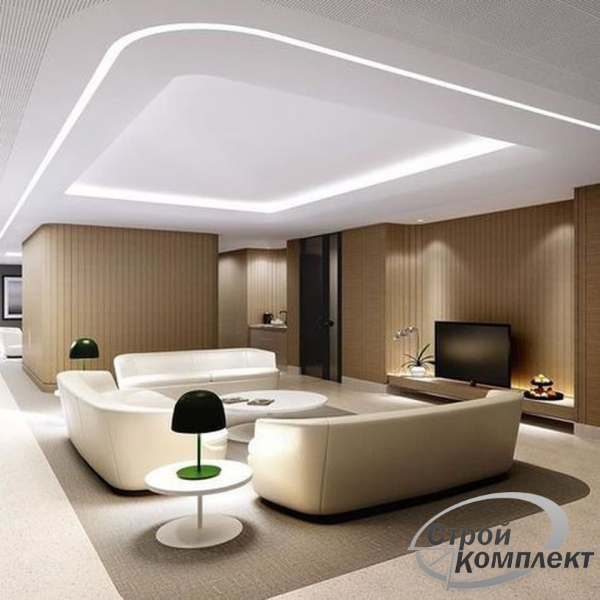 Чтобы конструкция с натяжным потолком выглядела так же, как гипсокартонный вариант, то есть без видимых стыков со стеной, воспользуйтесь технологией КРААБ. Специальный профиль с пазом и круглым шнуром внутри позволяет устанавливать пленку ПВХ или ткань стык в стык. Никаких потолочных плинтусов и маскировочных лент на финише не понадобится.